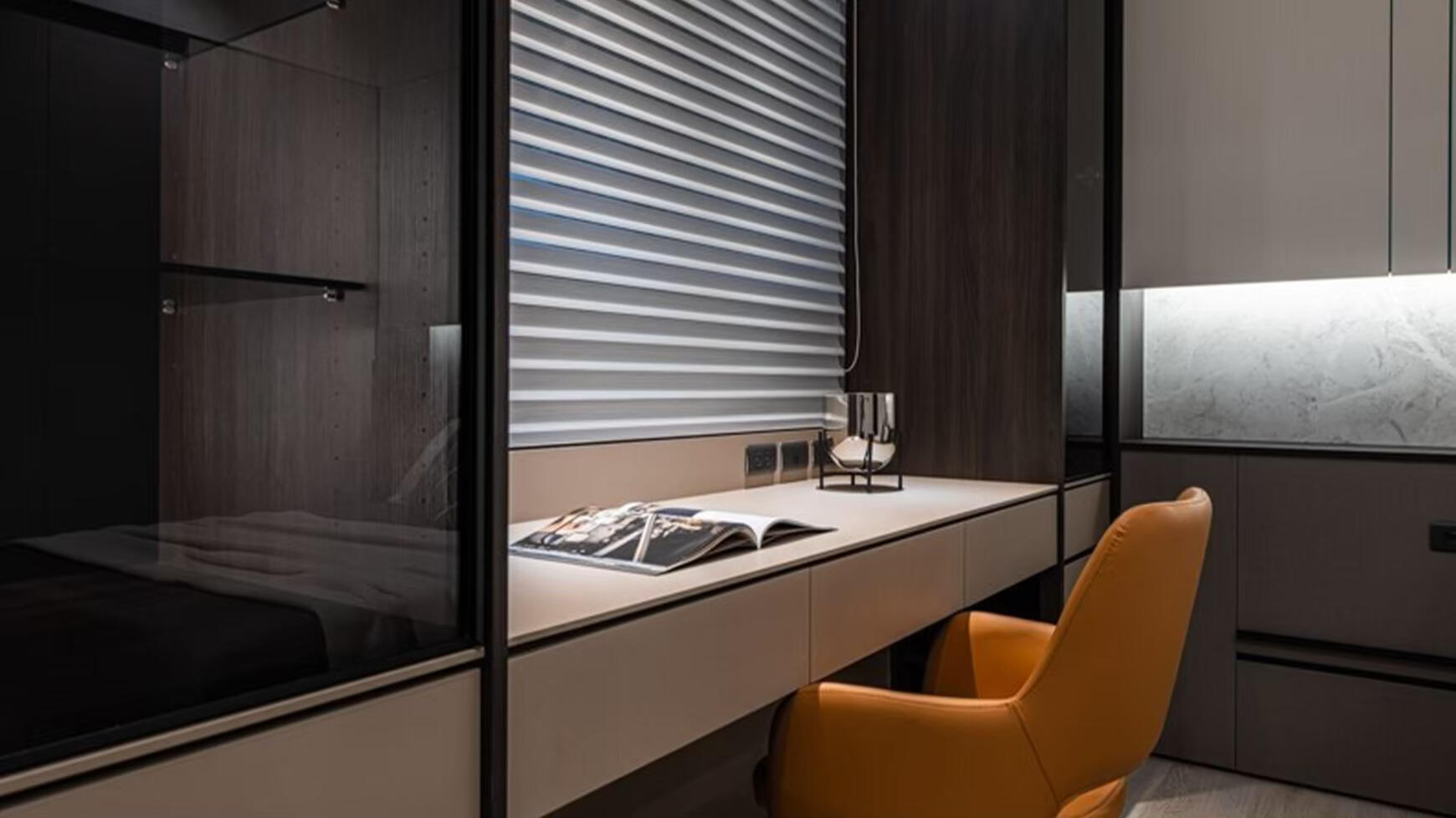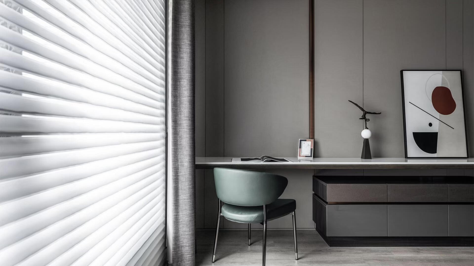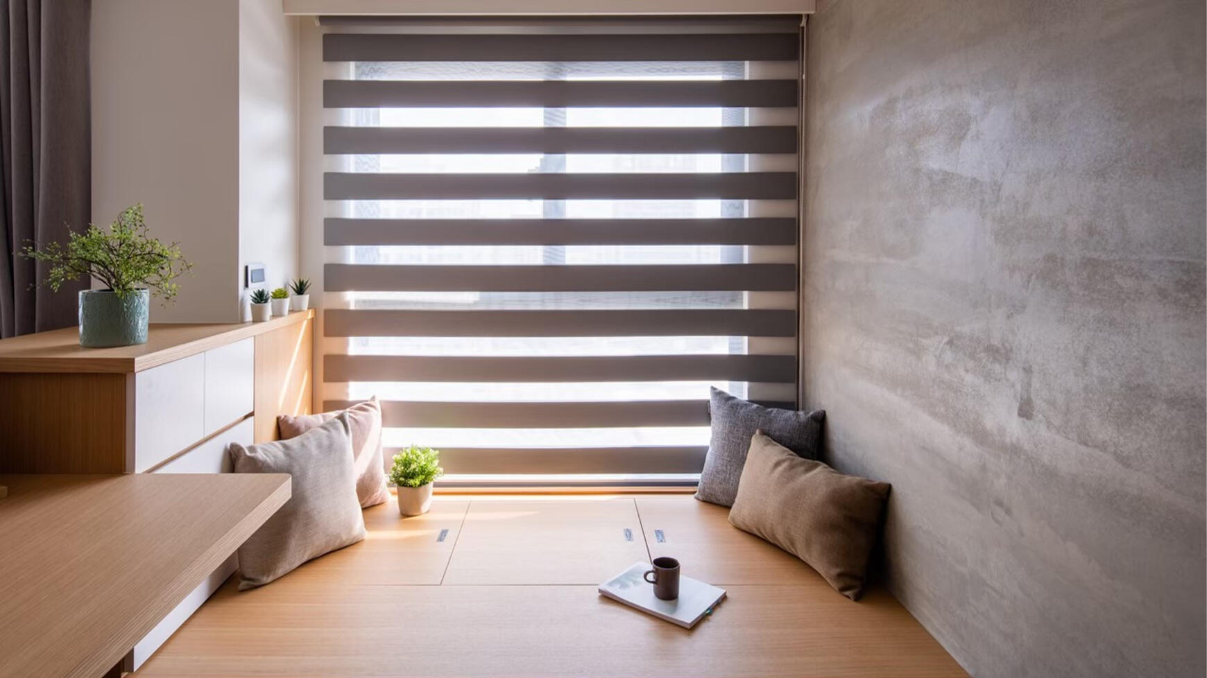 Wood, aluminum, PVC, and soft blinds that create structure and beautiful light and shadow. Ideal for studies, kitchens, and modern interiors.