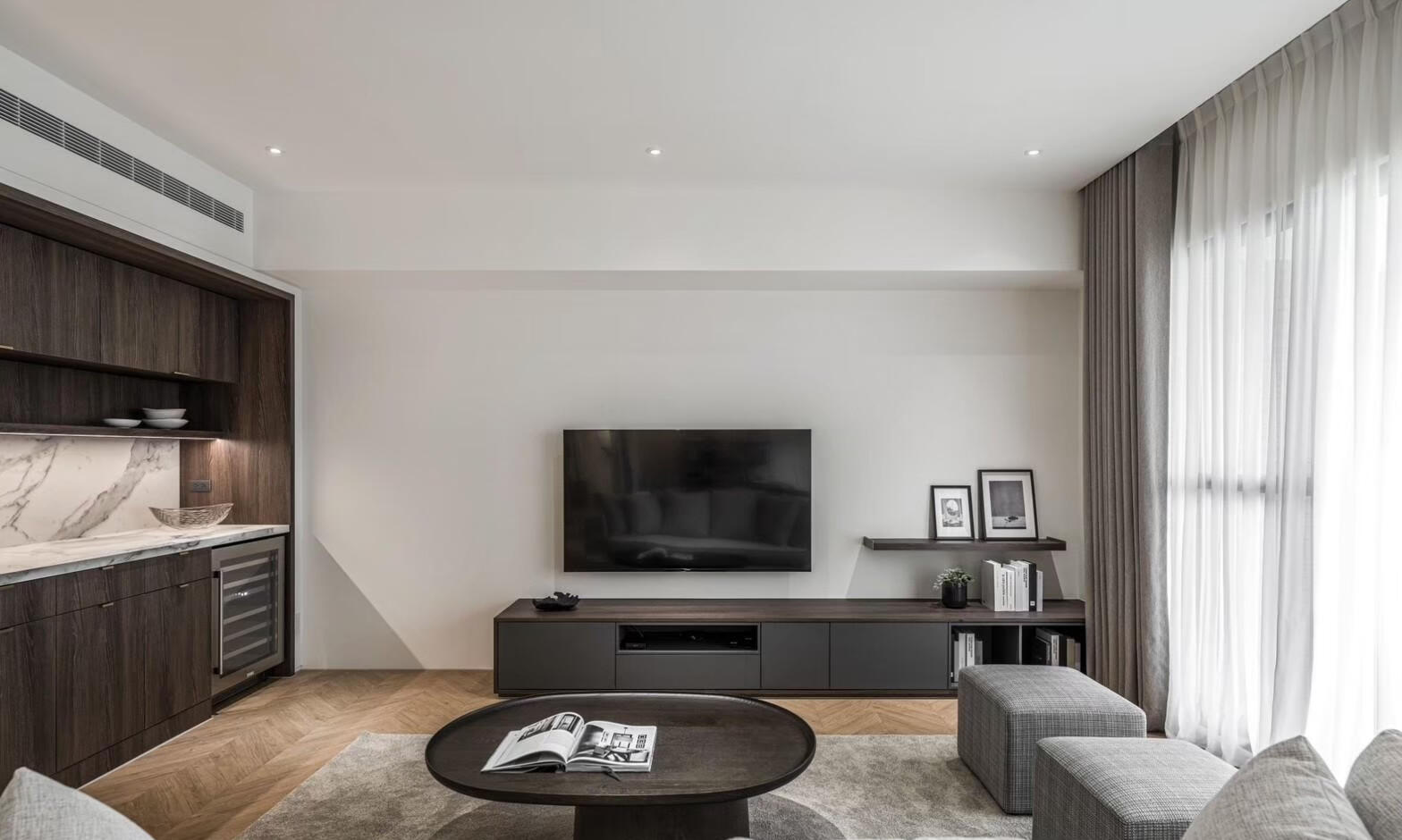 Designed to soften harsh light and protect privacy. Clean systems that support a minimalist interior without visual clutter.