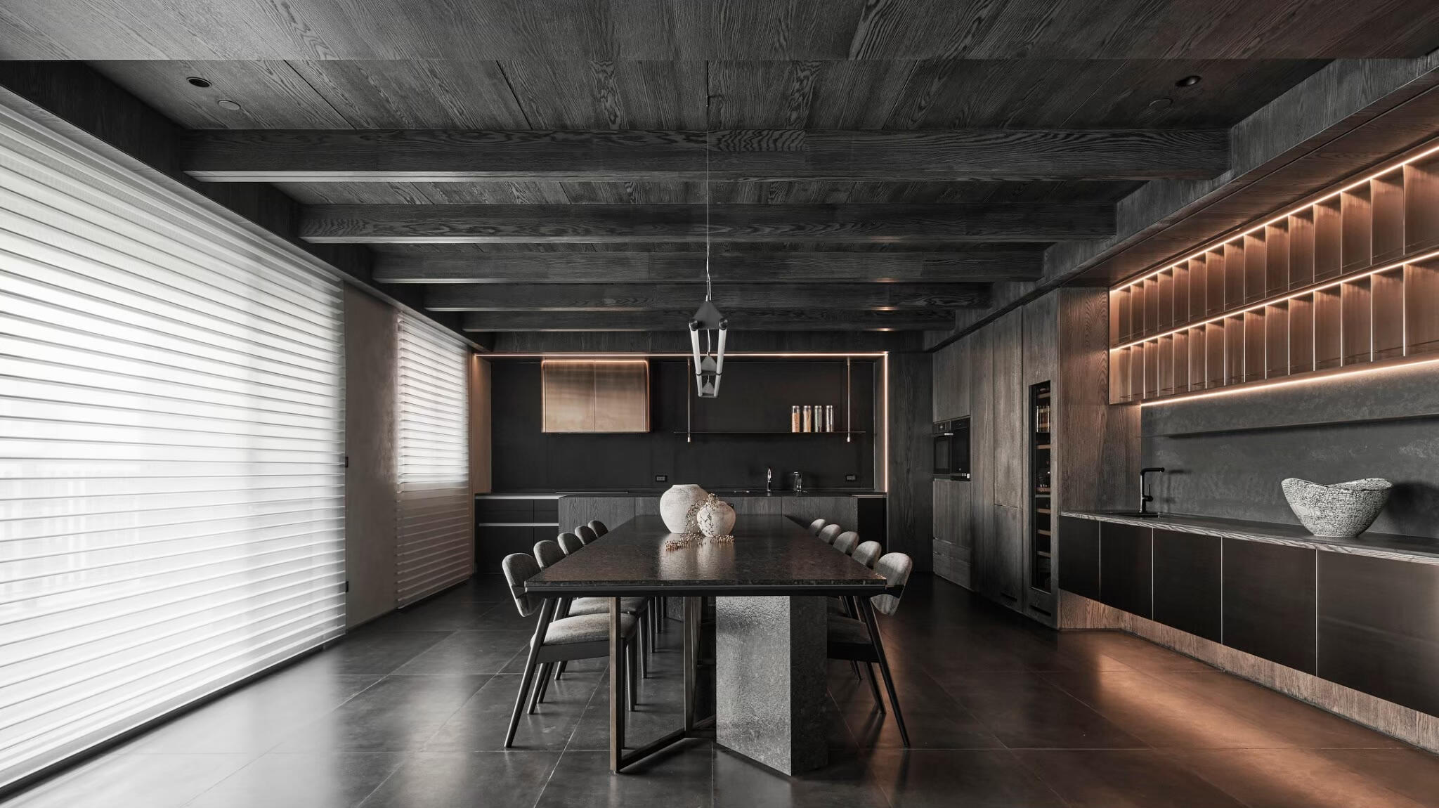 Wood, aluminum, PVC, and soft blinds that create structure and beautiful light and shadow. Ideal for studies, kitchens, and modern interiors.